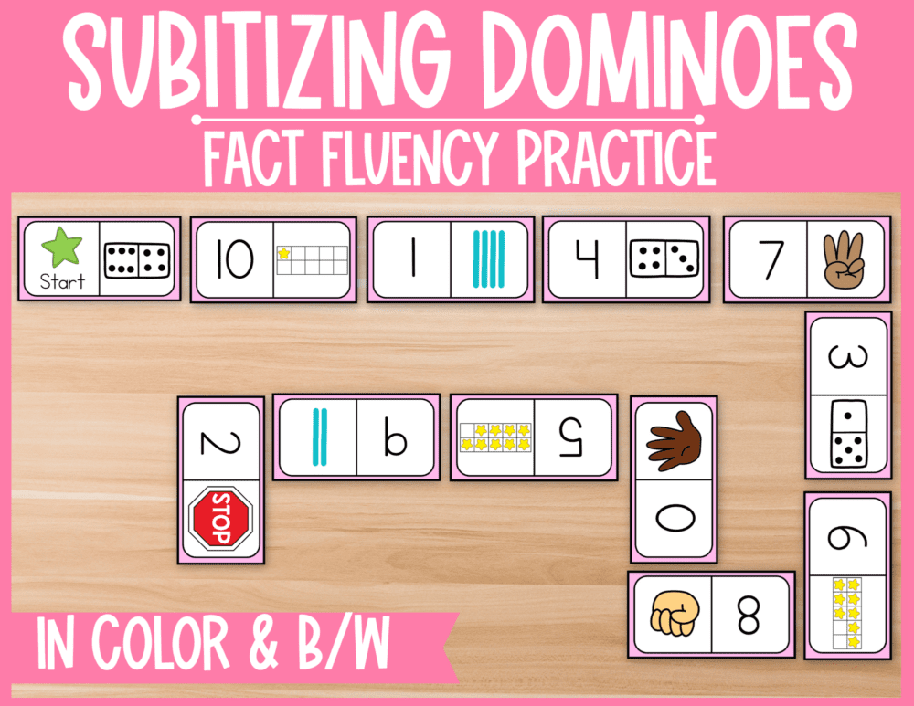 Grab this FREE set of subitizing dominoes students can practice subitizing with (a sample of my complete 6 domino set). Give your students practice seeing different quantities of tallies, ten frames, fingers, and dominoes. Your students will become quicker at recognizing number quantities in no time!